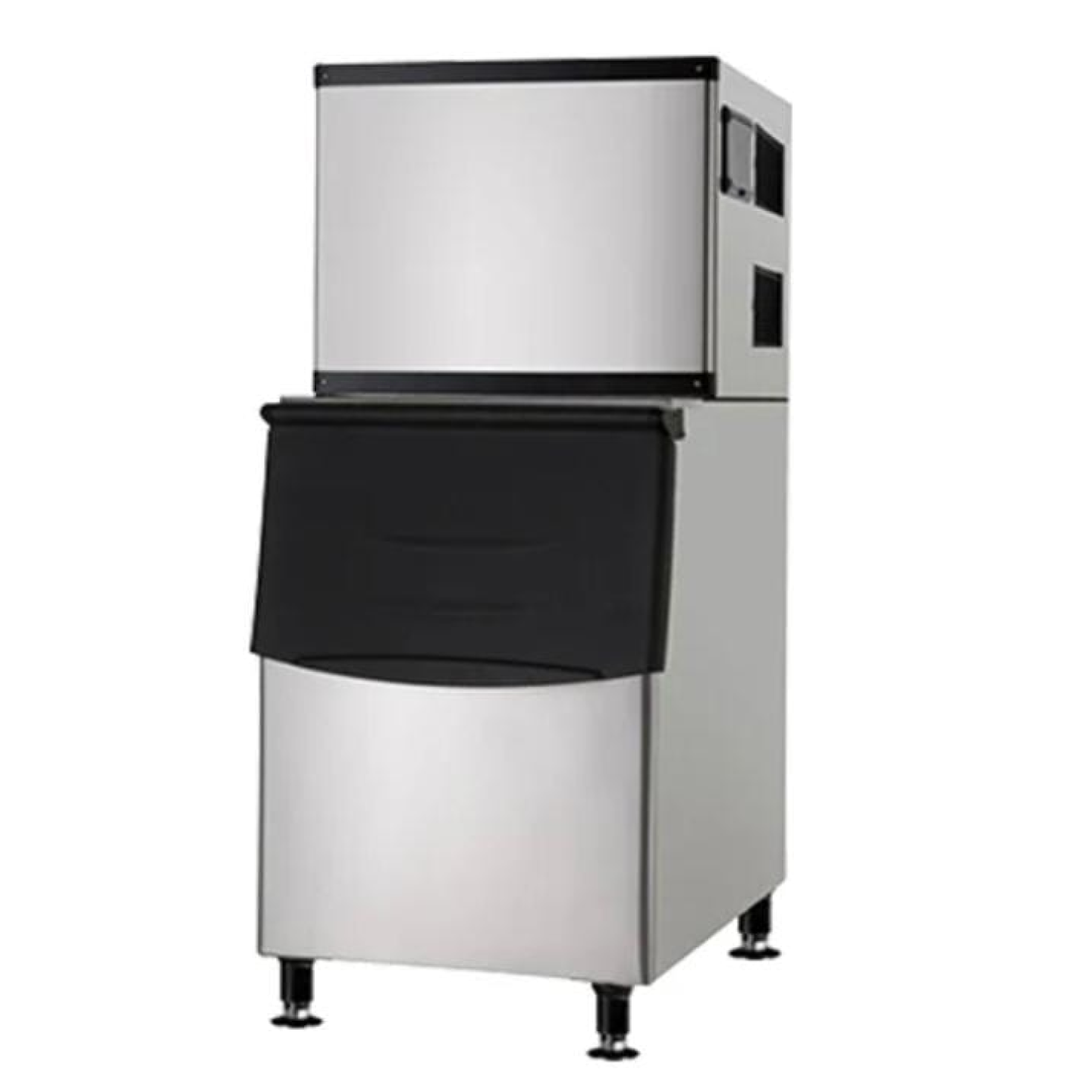 This commercial ice maker is a high-capacity, stainless steel unit designed to meet the demands of busy foodservice environments such as restaurants, hotels, cafes, and bars. It features a modular design with a top-mounted ice-making head and a bottom storage bin. Engineered for efficiency, durability, and consistent ice production, it is ideal for continuous use in professional settings.